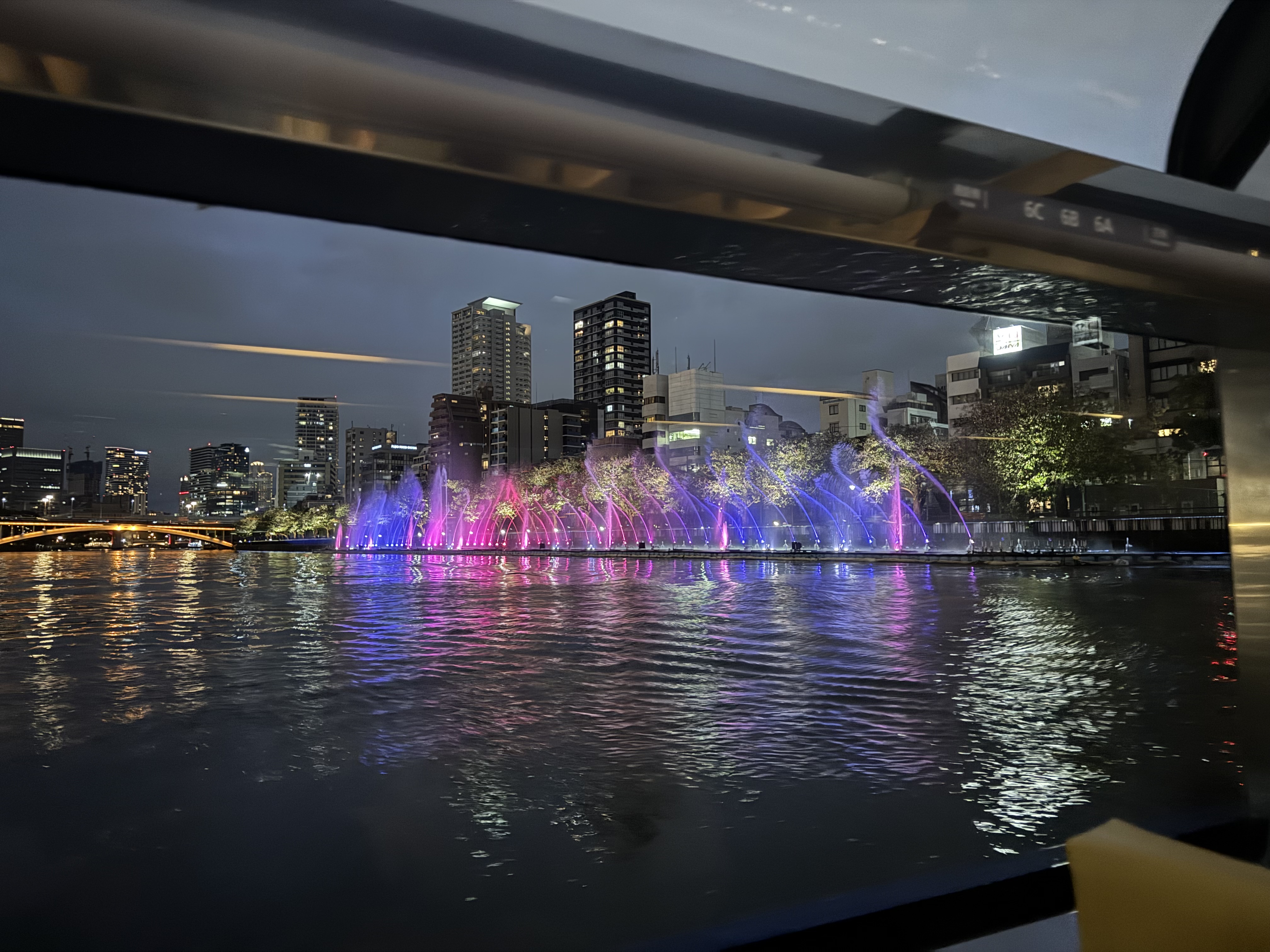 「よりみちSunsetクルーズ」は、仕事や観光で一日を過ごした後の“寄り道”にぴったりの、特別なクルーズです。 **大阪の魅力を再発見できる、贅沢な時間** 「よりみちSunsetクルーズ」最大の魅力は、大阪の街を彩る夕日と夜景を水上から同時に楽しめることです。中之島の高層ビル群に沈む夕日が水面に映り込む光景は、まさに絶景。日が落ちてからライトアップされた橋や建物が水面にきらめく景色は、大阪の新たな魅力を発見させてくれます。 **観光の締めくくりに最高の思い出を** 大阪城や中之島、そして歴史ある天神橋・難波橋といった「浪華三大橋」など、大阪を代表する観光スポットを船上から眺められます。日中の観光とは一味違う、幻想的な夕暮れ時の景色は、旅の締めくくりにふさわしい、最高の思い出となるでしょう。約25分という乗船時間も、気軽に体験できるポイントです。 **友人との特別な時間におすすめ** 友人との待ち合わせ場所としても便利な天満橋の八軒家浜船着場から出航します。食事やショッピングを楽しんだ後、仕事帰りなどにふらっと立ち寄るのに最適なロケーションです。船上から眺める美しい景色をバックに、思い出に残る写真を撮ったり、語り合ったりと、特別な時間を過ごすことができます。 **カップルで過ごすロマンチックなひととき** 夕暮れ時の空の色が刻々と変化する「マジックアワー」は、二人の距離をぐっと縮めるロマンチックな雰囲気を演出してくれます。夜景が輝き始める時間帯のクルーズは、デートにぴったりです。いつもとは違う特別な場所で、大阪の美しい夜景を眺めながら、二人の時間を満喫してください。 **期間限定の特別感も大きな魅力** 「よりみちSunsetクルーズ」は、例年秋季に期間限定で運航される特別なクルーズです。季節ごとに異なる水都大阪の景色を楽しむことができ、その時期だけの特別な体験ができるのも大きな魅力です。 ※スケジュール欄に17:30便と18:00便の記載がありますが、出航時間は17:40便と18:10便の2便のみです。